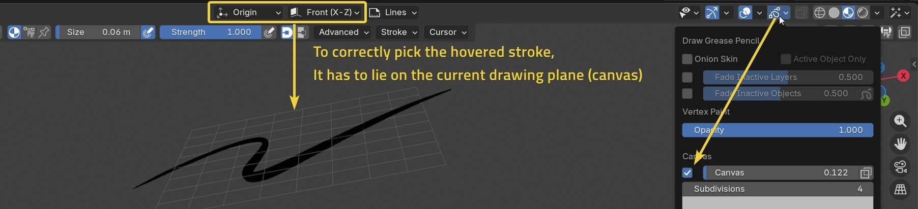 - The stroke might not be placed on the canvas, enable the display to ensure it's on it.