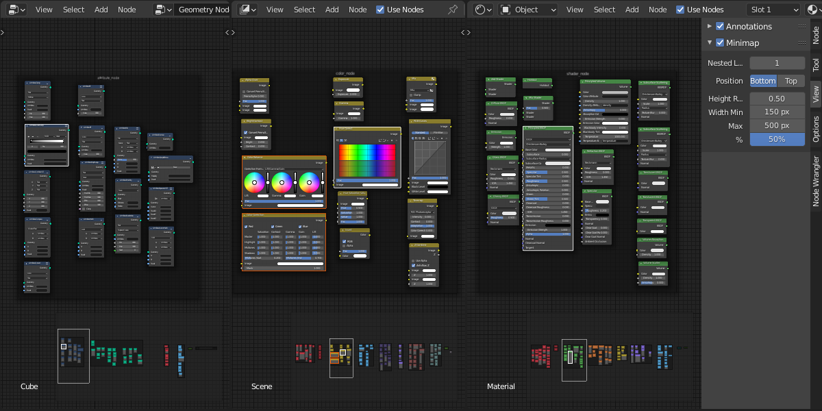Blender add-on that display an interactive minimap of the node tree in all node editors